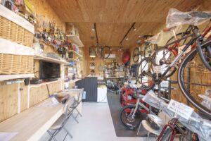 土間張りの店舗には、ご主人念願の自転車屋さんを開業しました!