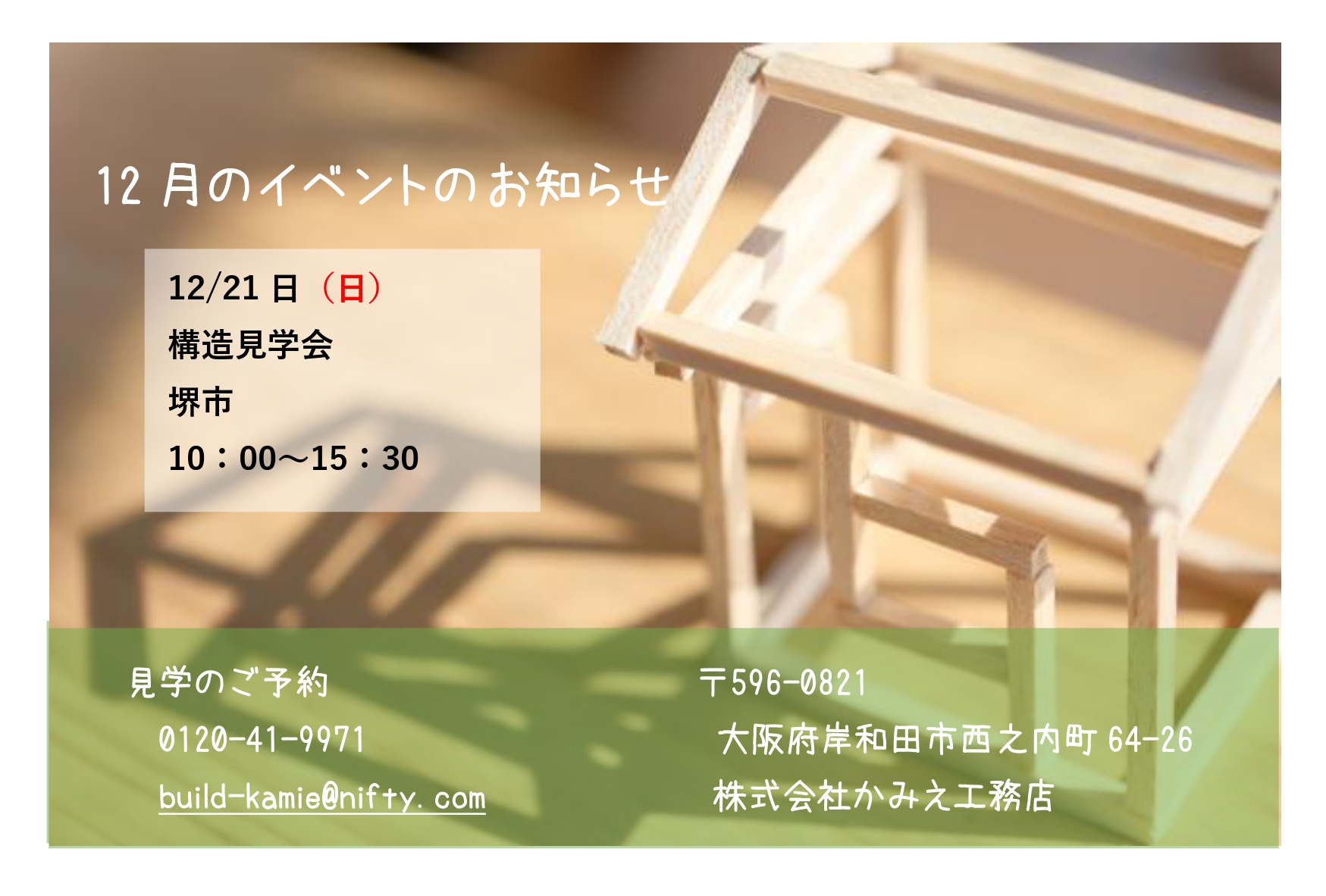 構造見学会HP用_page-0001 2025.12.12 カテゴリー イベント ブログ 最新記事 住宅省エネ2026キャンペーンスタート! 完成見学会開催のお知らせ 新年のご挨拶 CONTACT 0120-41-9971 お気軽にお電話ください! メールフォーム メールでも受付しております!